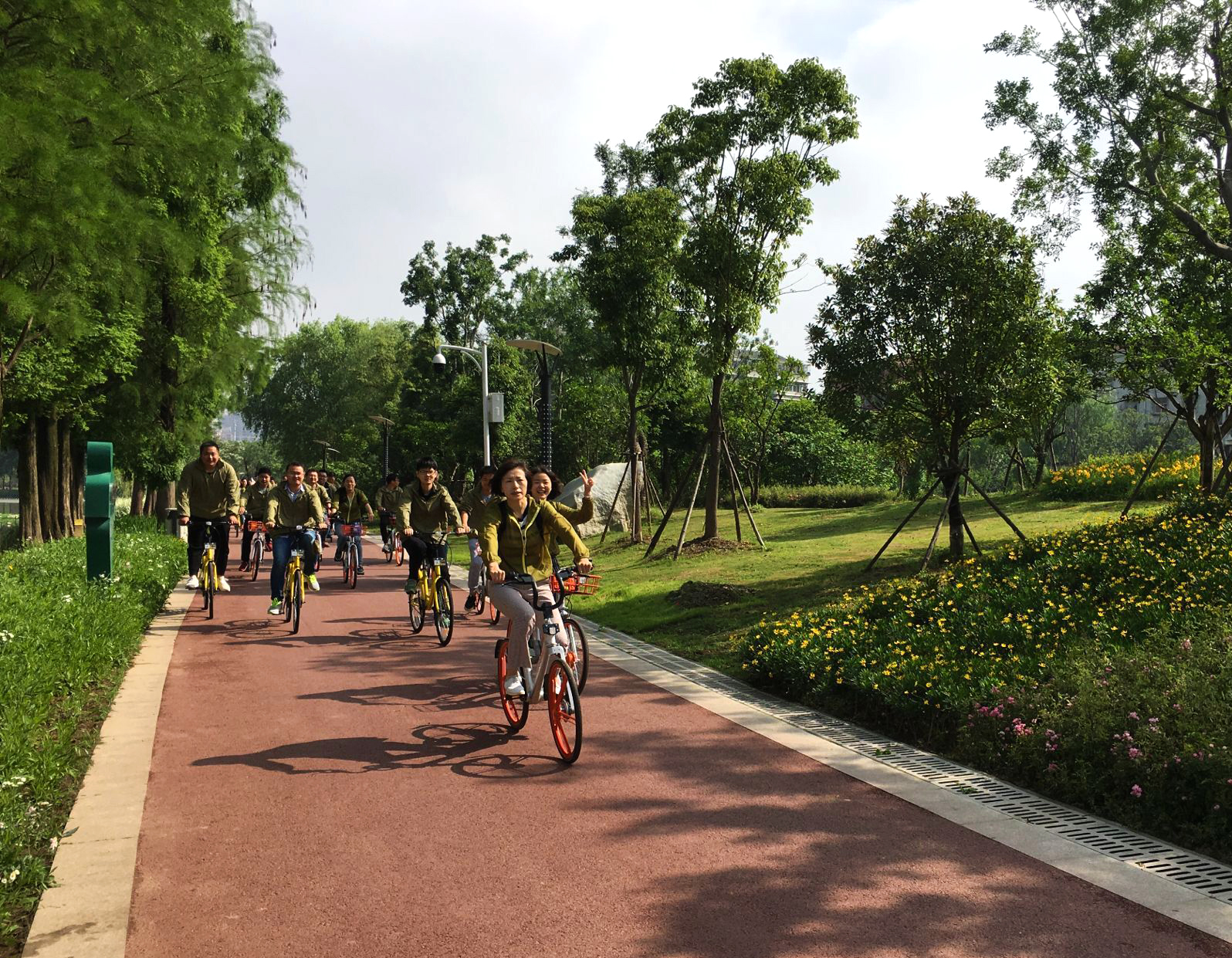 五月的清晨涼風習習,天氣爽朗。上午八點半,大家統一著裝,齊聚墨水湖公園,黨支部書記周紅一番激情飛揚的致辭迎來了本次活動的重點——騎行參觀我公司承建的墨水湖公園項目。