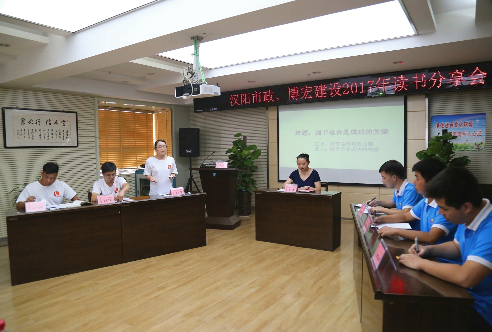 為進一步引發大家思考,倡導真理越辯越明,一場題為“細節是否是成功的關鍵”的辯論賽在大家的掌聲中正式開始,正反雙方結合《細節決定成敗》內容,互不相讓,針鋒相對,拿數據、擺事實、說典故,對什么是細節、細節重要還是大局方向重要等主要問題展開了激烈的交鋒,同時也引來了場下一陣又一陣的掌聲。