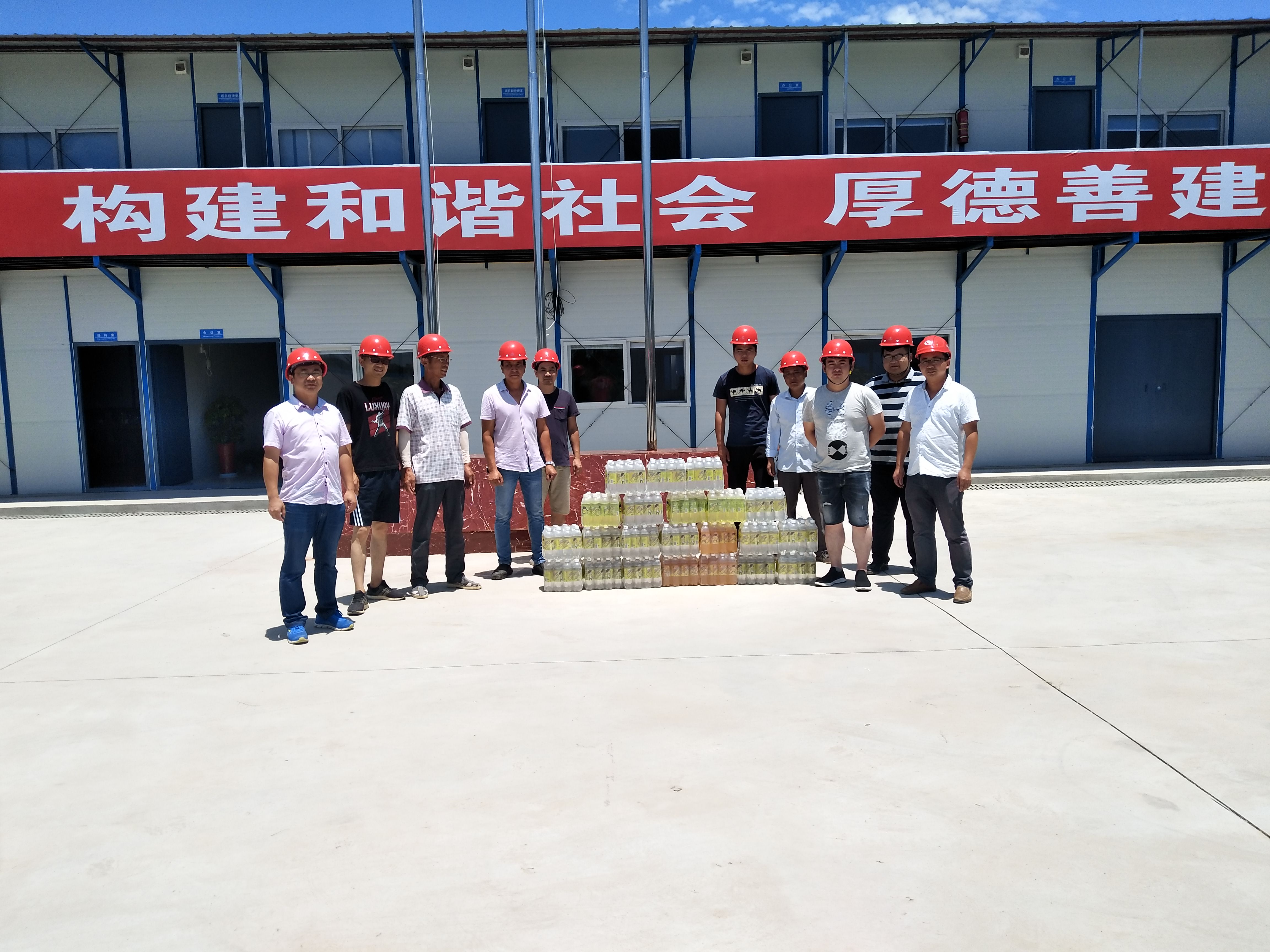 在送清涼活動中,面對烈日下汗流浹背的勞動者們,我們聽到最多的就是“這么熱的天,辛苦你們了,多注意防暑、防曬”,樸實的話語飽含關心。在下一步的工作中,博宏建設也將繼續加大夏季作業防曬防暑工作,為一線作業的職工送上一絲清涼、一份關愛。